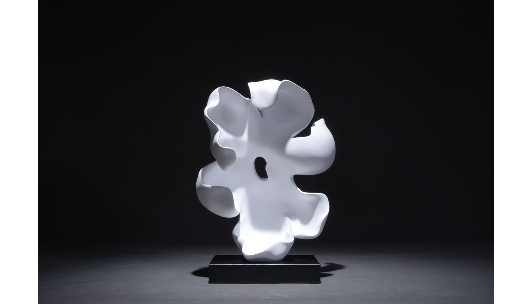 Crafted from composite materials, this sculpture resembles blooming petals unfurling gracefully in space. Its fluid and organic curves embody vitality and the pure beauty of nature. The central void creates a visual focal point, symbolizing openness, breath, and inner tranquility. With its pure white finish, the piece radiates a contemporary aesthetic, serving both as a striking centerpiece for modern interiors and as a collectible that conveys the harmony of nature and art.