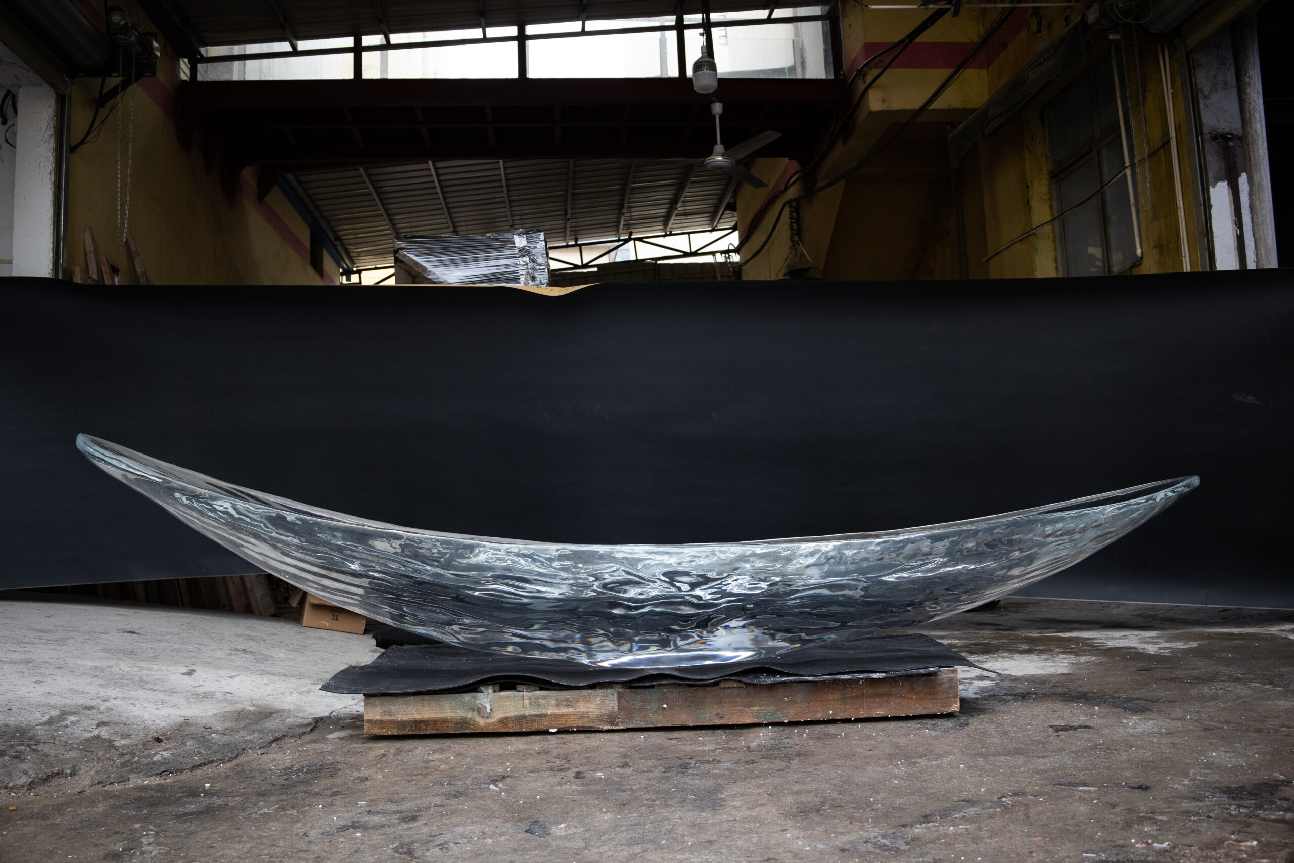 Crystal Vessel is a sculptural furniture piece shaped like a luminous boat, crafted from transparent resin with water-like textures rippling across its surface. Beyond its functional design, it symbolizes exploration, journeys, and the pursuit of dreams. Under shifting light, the crystal-clear body reflects a sense of fluidity and serenity, as though a vessel of dreams is gently anchored in the space. It serves as both a centerpiece and a poetic statement, blending art with timeless elegance.