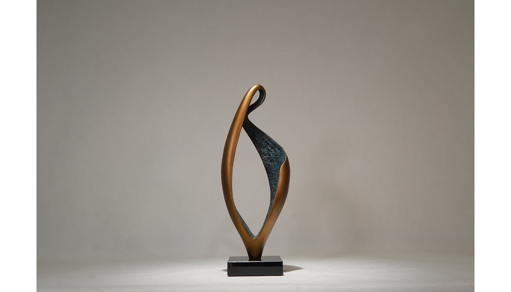Dance of Light captures elegance through its fluid lines, resembling a leaf swaying in the wind or a flame frozen in time. The contrast between the polished metallic exterior and the textured inner surface symbolizes the harmony of strength and softness, motion and stillness. Its slender silhouette and hollow center evoke openness and a sense of boundless freedom. Ideal for display in contemporary interiors, hotel lobbies, or private art collections, this sculpture brings both vitality and depth to any space.