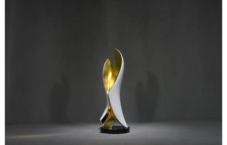 Dance of Light captures the harmony between purity and brilliance through its flowing form. The smooth white exterior represents serenity and clarity, while the golden interior radiates vitality and splendor. Together, they create a visual dialogue of contrast and balance, embodying elegance and spiritual energy.