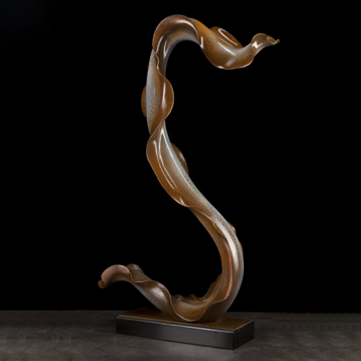 This bronze sculpture unfolds in graceful spiral curves, resembling a dancer poised in motion. The fluid lines evoke a sense of natural rhythm, while the warm bronze patina adds depth and refinement. Subtle highlights on the surface capture light and shadow, enhancing its dynamic presence. Balancing strength with elegance, the piece symbolizes the rhythm of life and the flow of energy. Ideal for galleries, hotel lobbies, or private interiors, it enriches any space with contemporary sophistication and artistic grace.