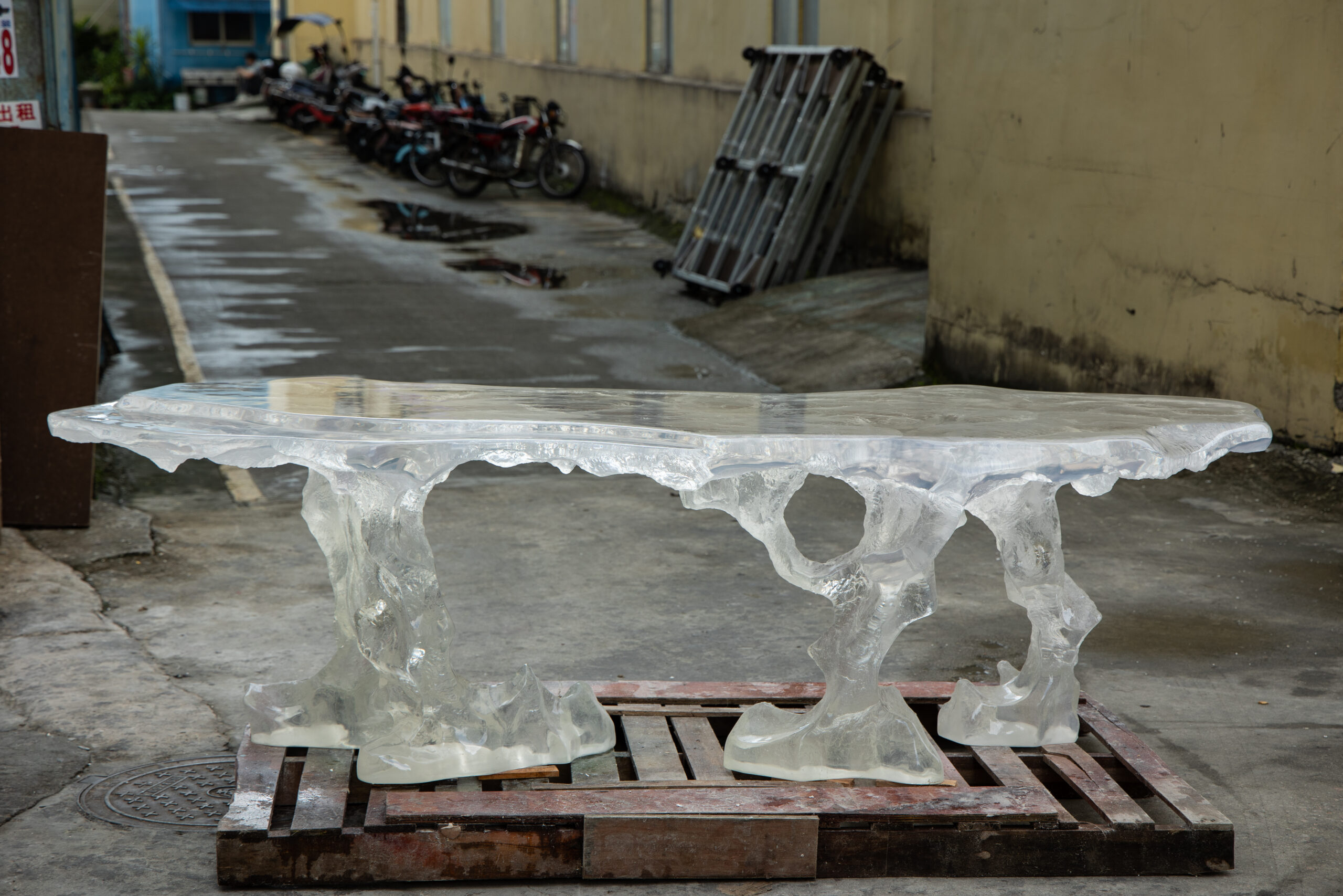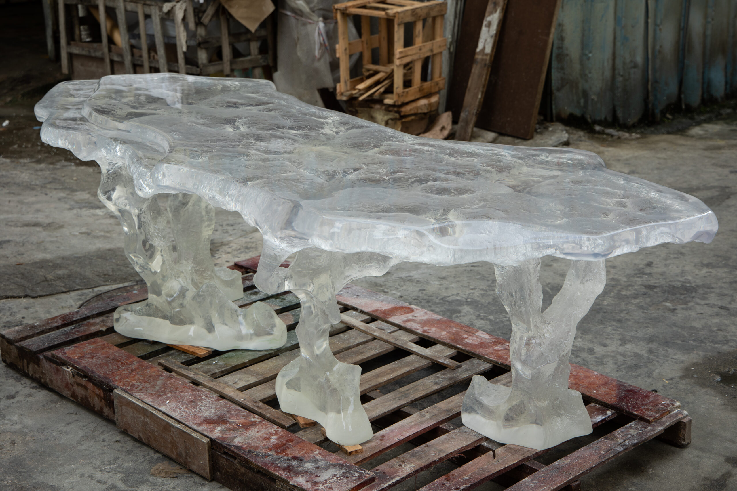 The Glacier Cavern Resin Table is crafted entirely from transparent resin, inspired by the formations of glaciers and natural caves. Its surface glistens like an ice field, while the sculptural legs resemble intertwined ice pillars and rocky structures, embodying the raw power of nature. More than functional furniture, it is a statement art piece, perfect for galleries, luxury hotels, and refined residences, offering a pure and awe-inspiring presence.
