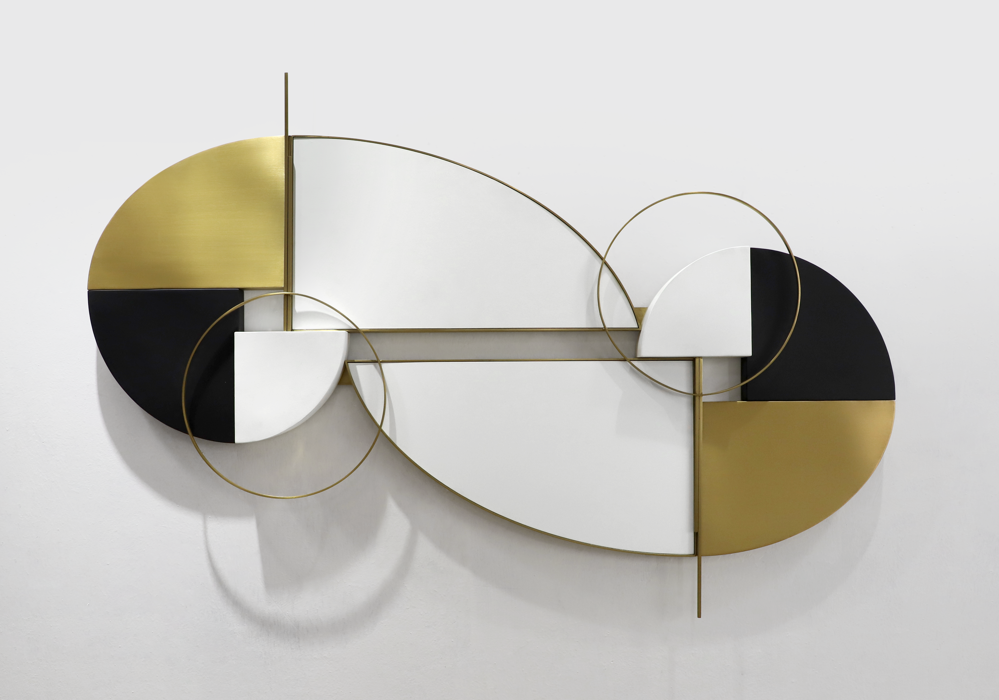 This wall-mounted metal artwork is designed around geometric elements, combining circles, semicircles, and rectangles with a striking palette of black, white, and gold. The interplay of metal lines and circular frames creates a refined balance between strength and elegance. Minimalist yet dynamic, it is more than just decoration—it is a statement piece that embodies order and aesthetics. Perfect for hotel lobbies, art galleries, modern apartments, and upscale commercial spaces.