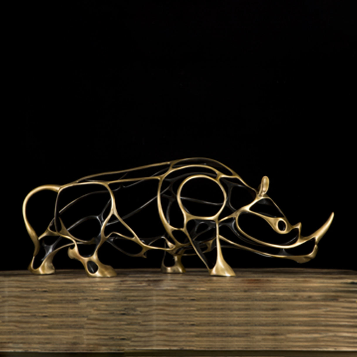 This bronze sculpture reimagines the rhinoceros through an abstract, hollowed framework that highlights both strength and transparency. The metallic lines trace the powerful silhouette of the animal, balancing solidity with lightness. As a symbol of resilience, courage, and protection in nature, the rhinoceros here is transformed into a contemporary artistic emblem with futuristic appeal. Perfect for galleries, hotel lobbies, or private interiors, this piece embodies the union of raw power and modern elegance.
