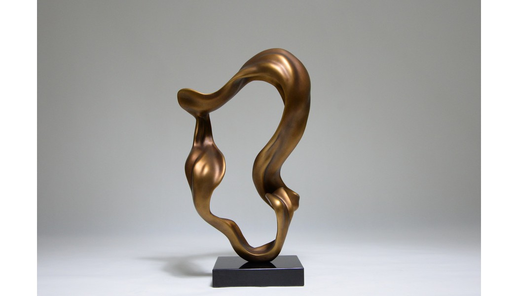This bronze-toned sculpture presents an open circular form crafted with fluid, dynamic lines, as if frozen light were dancing in space. It blends strength with elegance, symbolizing the infinite cycle of time and energy. The form carries both the rhythm of nature and the spirit of modern abstraction, making it a striking centerpiece for hotel lobbies, art galleries, and private interiors, where it elevates the atmosphere with its radiant presence.