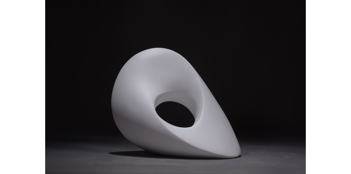 Ring of Flowing Shadows is sculpted with smooth white curves, forming a hollow oval shape that is both minimal and dynamic. It resembles a stone refined by wind and water, leaving behind a transparent opening that symbolizes the passage of time. From every angle, the sculpture reveals flowing lines, like shadows drifting through space, evoking poetry and contemplation.