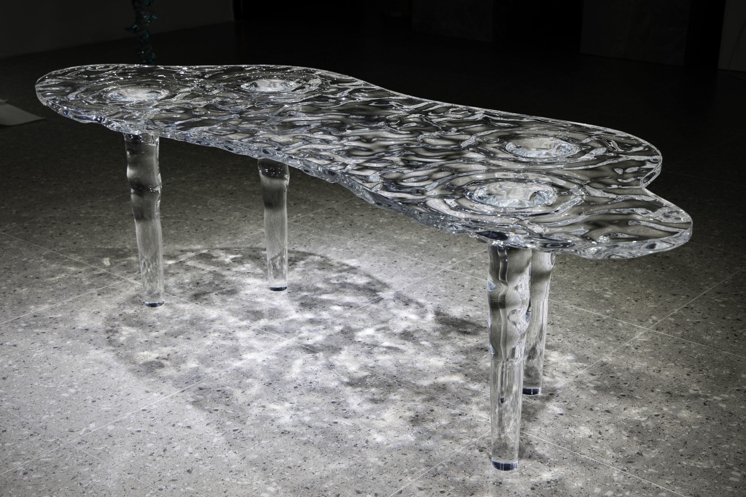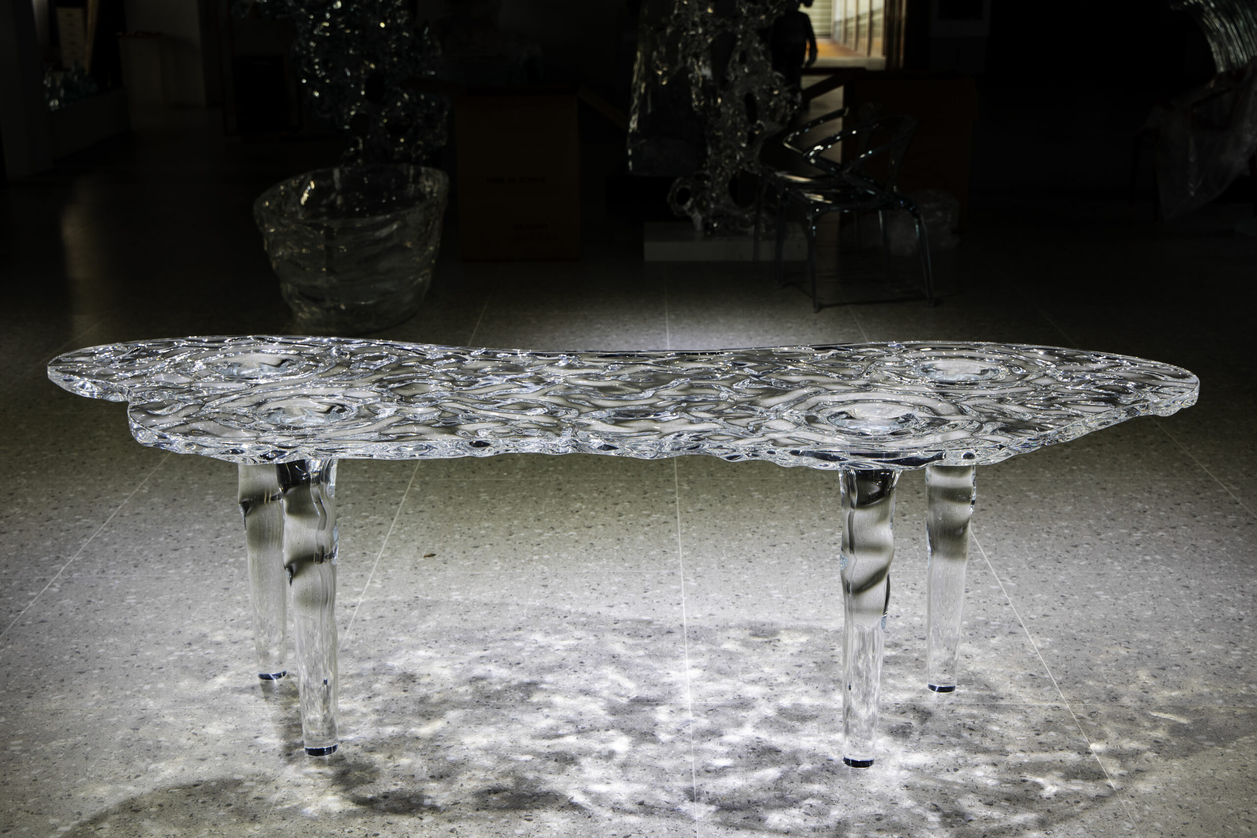 The Rippled Ice Resin Table is meticulously crafted from high-transparency resin. Its tabletop features delicate ripple-like textures, resembling the surface of a lake frozen in time. The crystal-clear legs stand like ice pillars, balancing nature’s elegance with contemporary design. More than a functional piece, it is an art sculpture, perfect for luxury hotels, galleries, and private residences, creating an atmosphere of tranquility, purity, and artistic presence.