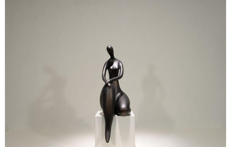 Serene Poise portrays an abstract seated female figure with her arms gently crossed. The posture exudes calmness and composure, embodying a sense of inner strength and quiet dignity. The smooth dark metallic finish adds a contemporary touch, symbolizing elegance and resilience found in silence.