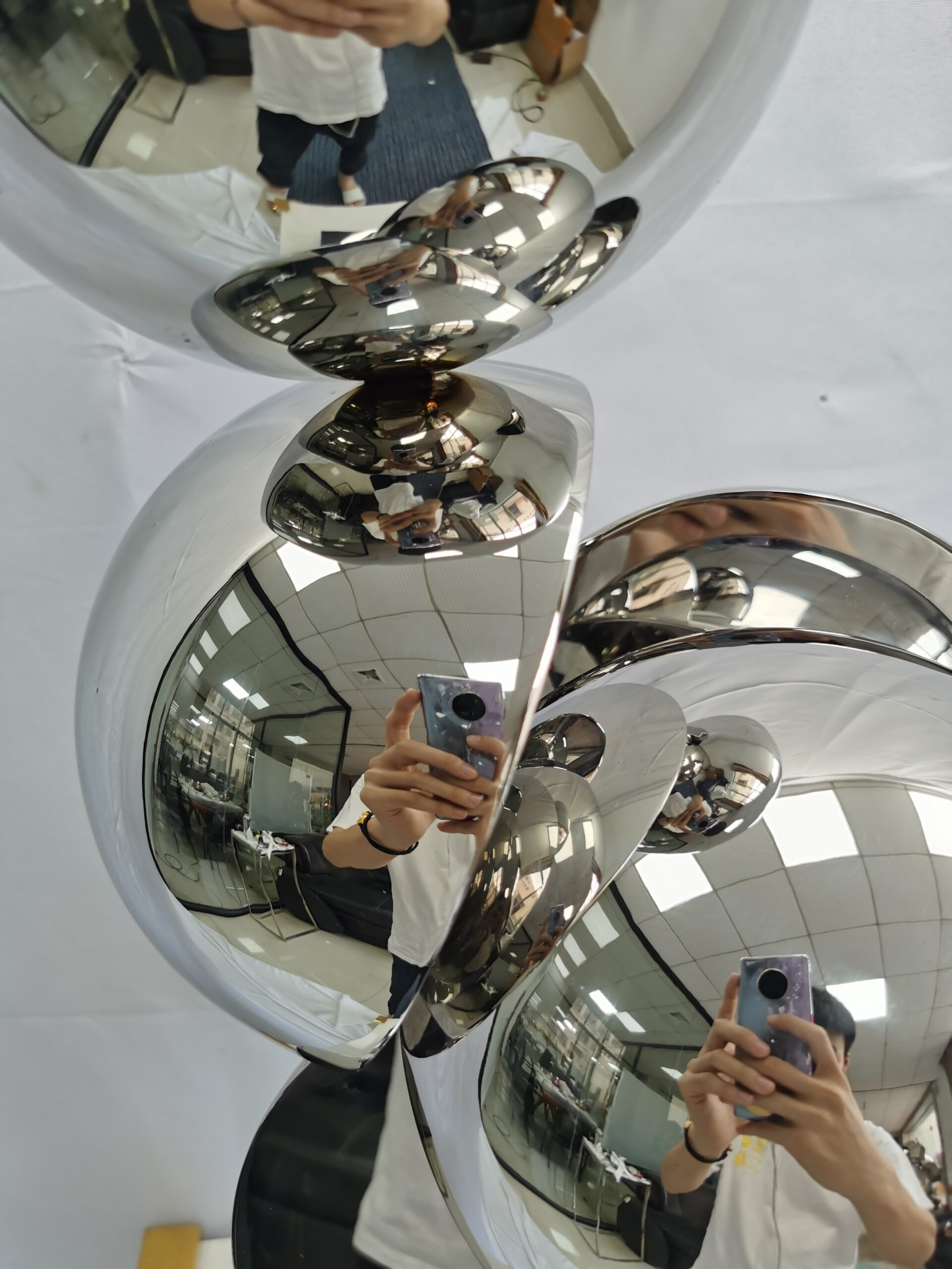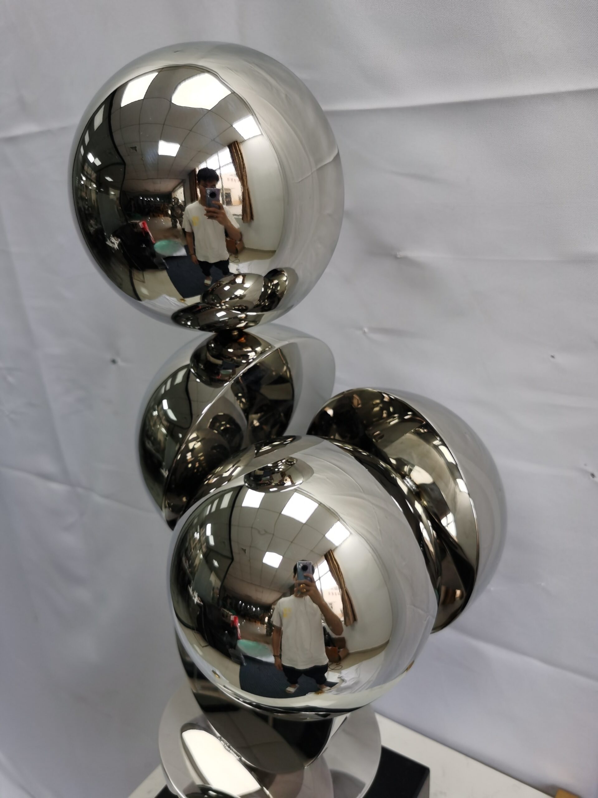 This sculpture is crafted from polished stainless steel, featuring an arrangement of spheres and hemispheres delicately stacked in perfect balance. The mirror-like finish reflects the surroundings and viewers, creating an engaging interplay between art and environment. With its minimalist yet powerful design, the piece symbolizes harmony, order, and the rational beauty of contemporary art. Ideal for hotel lobbies, art galleries, exclusive clubs, and private collections, it adds a sense of tranquility and sophistication to any space.