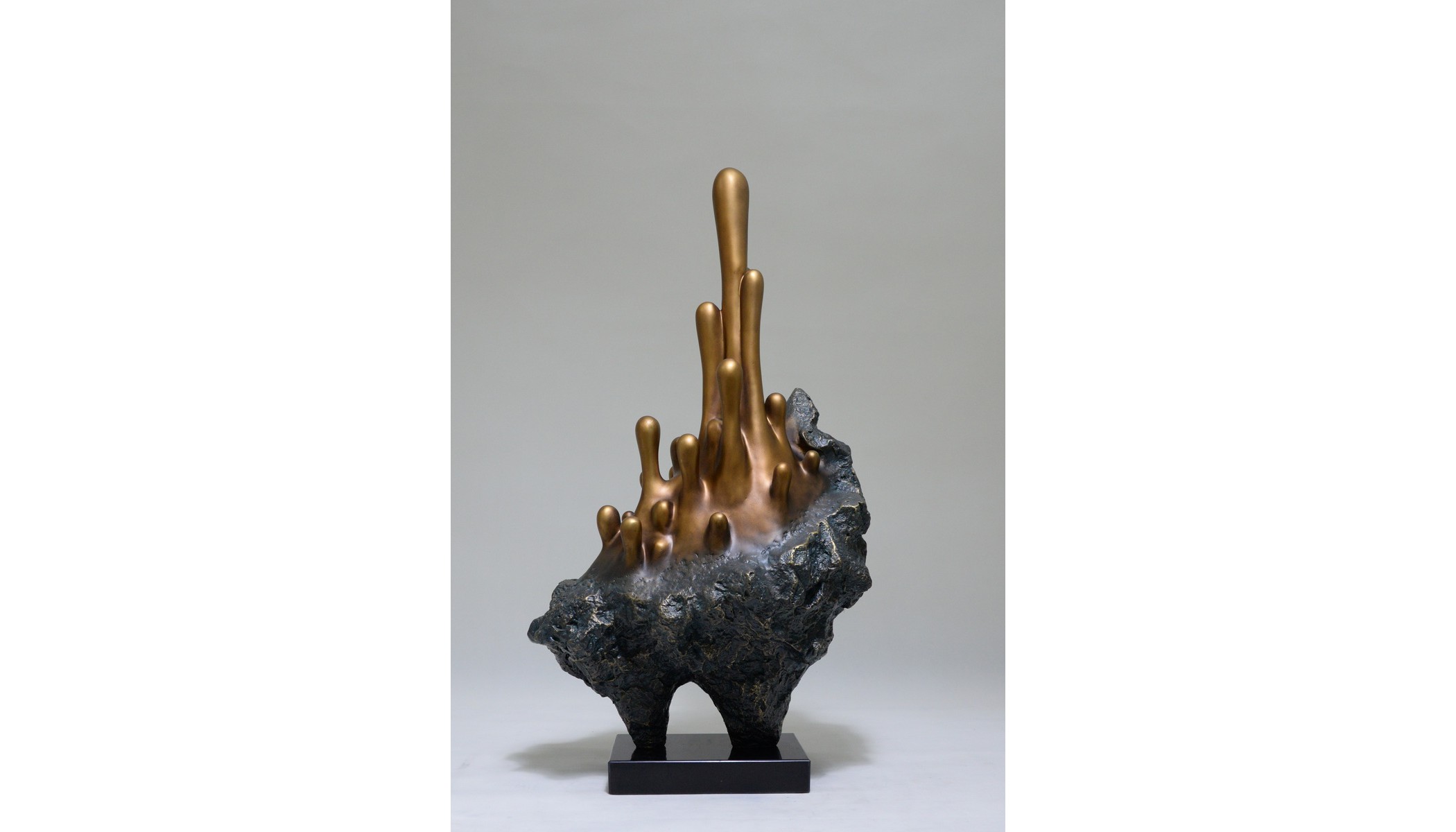 This sculpture rises from a rugged rock base, extending into golden organic forms that resemble erupting magma or life emerging from the earth. It embodies the explosive force of nature and the surge of creativity. The contrast between the rough stone and the luminous gold, between solidity and growth, creates a dynamic tension filled with symbolic meaning. Beyond celebrating the power of nature, it conveys the spirit of resilience, breakthrough, and renewal. Ideal as a centerpiece in modern interiors or public spaces, it evokes both awe and inspiration.