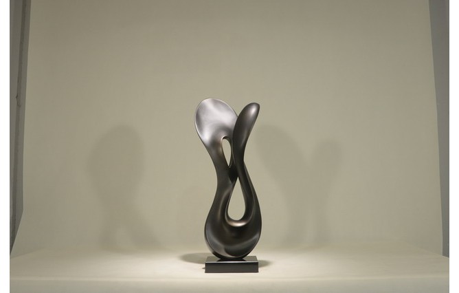 Symphony captures the beauty of harmony through its fluid curves and central void. The intertwined forms resemble two melodies weaving together, symbolizing resonance between people, nature, and space. Its dark metallic finish evokes a sense of depth and tranquility, blending modern elegance with poetic charm.