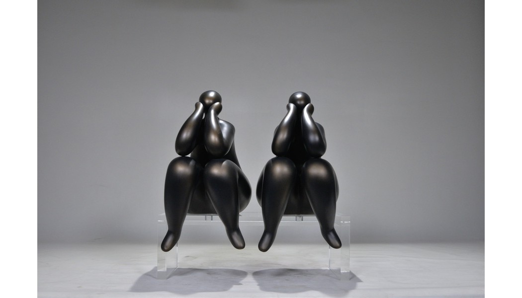 This sculpture depicts two seated figures side by side, their rounded forms and hand-supported faces immersed in silent contemplation. Through its minimalist and abstract design, it captures the universality of introspection and the resonance of the human spirit. The paired posture conveys both companionship in solitude and the silent understanding between individuals. Finished in deep black, the piece exudes weight and mystery, imbuing it with a philosophical aura. Perfect for modern interiors, galleries, or serene spaces, it brings a sense of calmness and profound reflection.