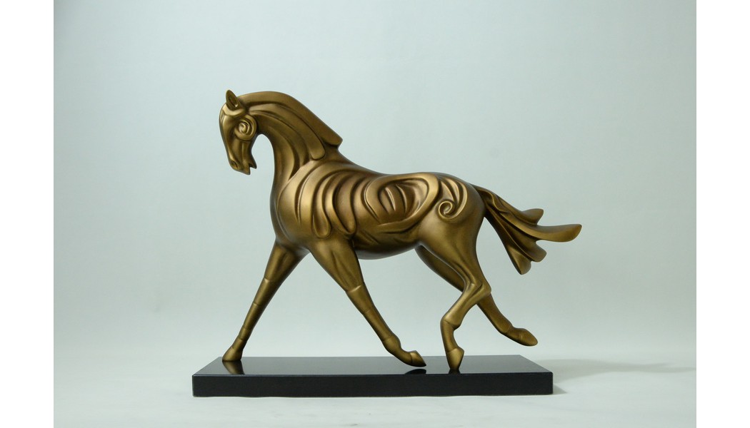 This sculpture portrays a majestic steed, finished in a radiant golden hue. The sleek lines and unique body patterns accentuate its strength and vitality, while its proud stride symbolizes freedom, courage, and honor. Combining classical charm with modern elegance, this piece serves both as a distinguished art collectible and a refined décor, radiating an aura of nobility and bold spirit.