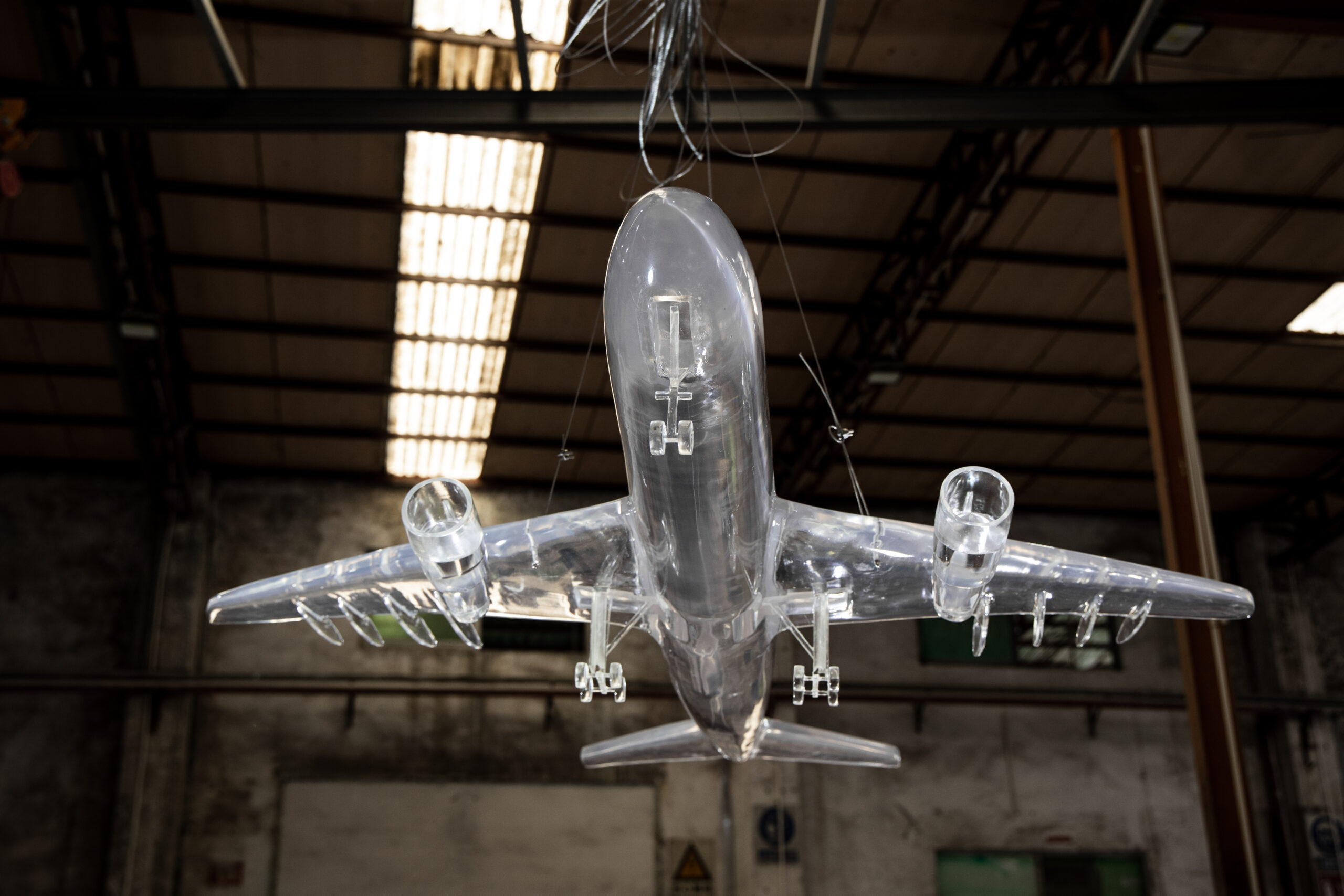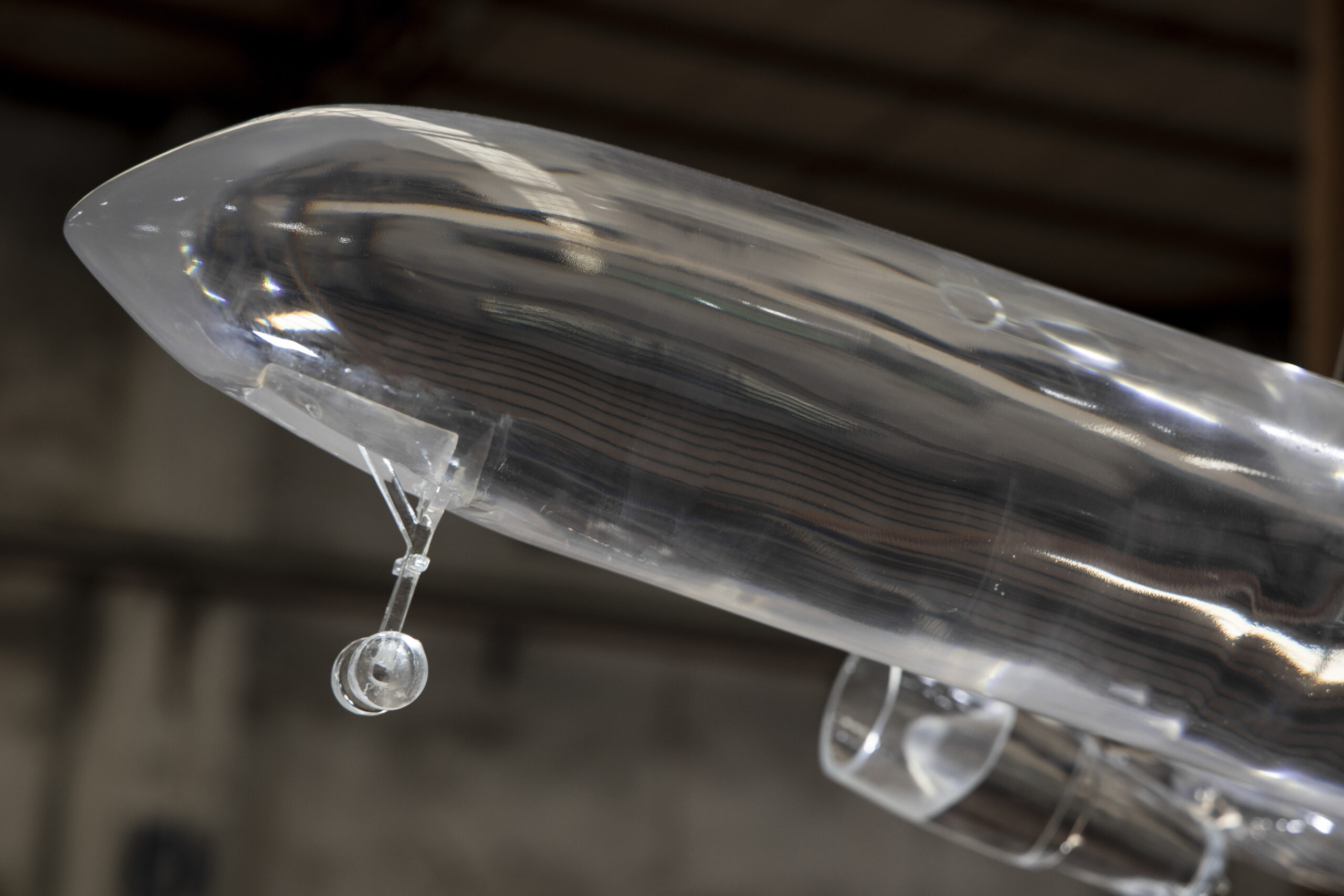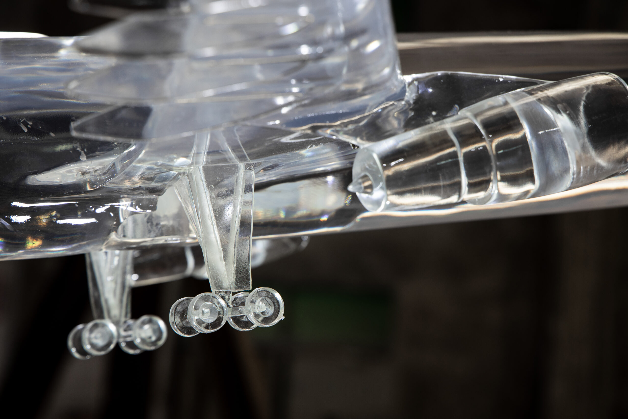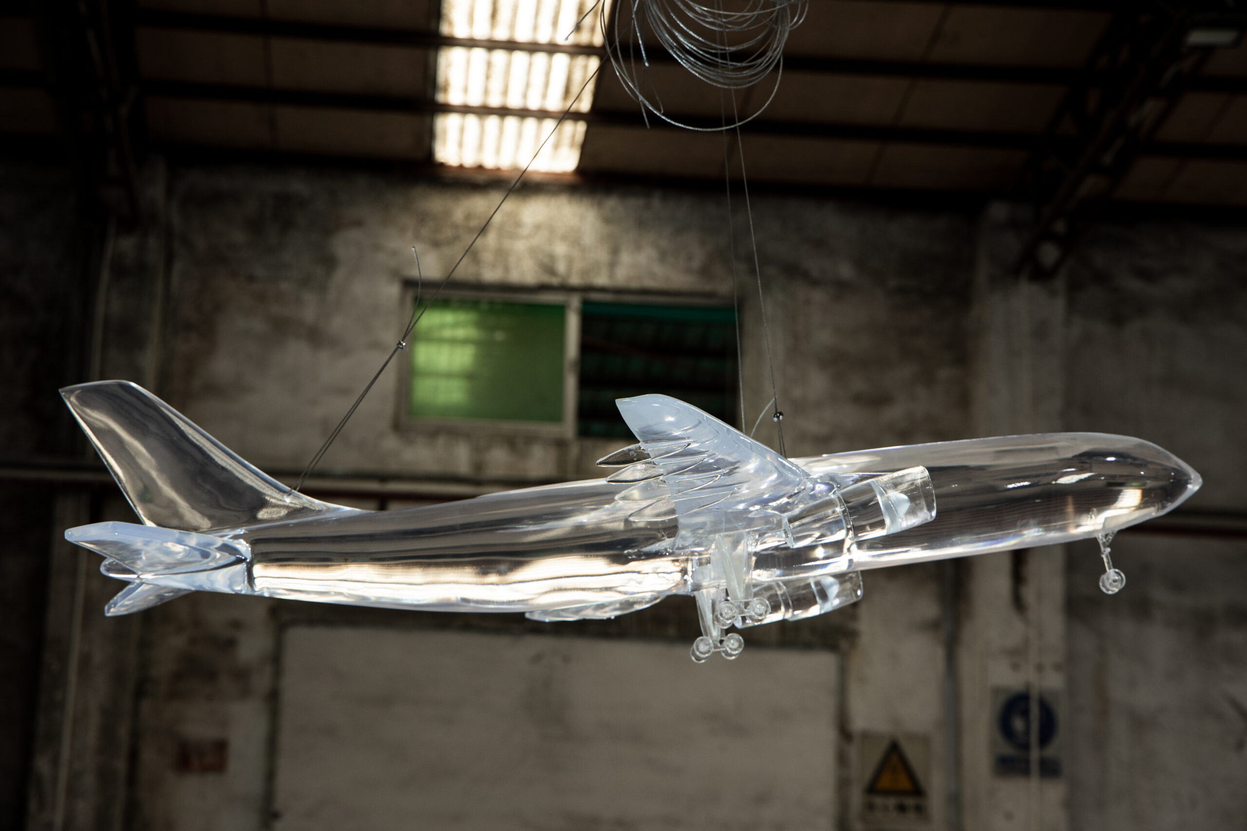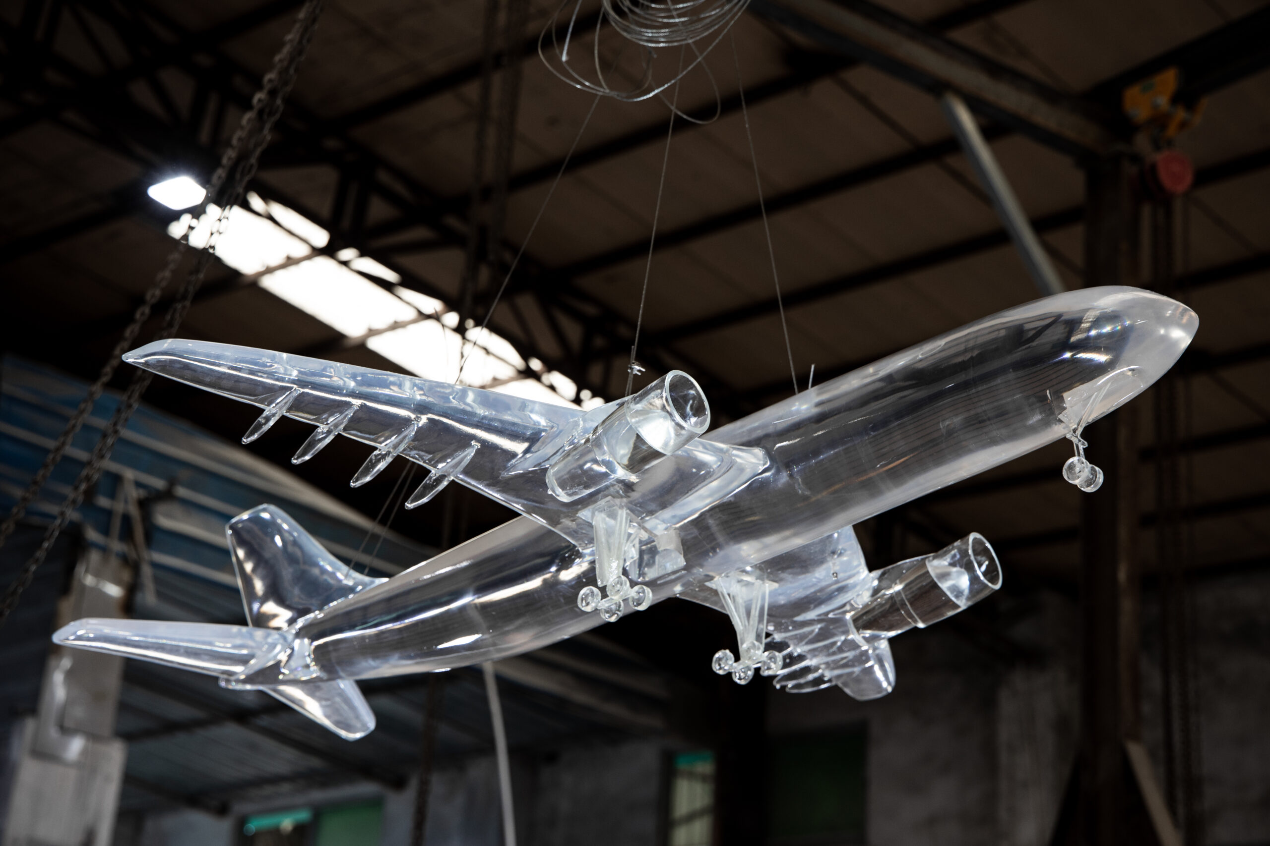 Wings of Transparency is a resin-crafted airplane sculpture, designed with striking precision and a crystalline finish. Suspended in space, it appears as if frozen in mid-flight—a phantom aircraft bridging reality and imagination. The work symbolizes humanity’s eternal desire to conquer the skies while reflecting on the delicate balance between the tangible and intangible. Its weightless presence infuses the space with both futuristic vision and poetic serenity.